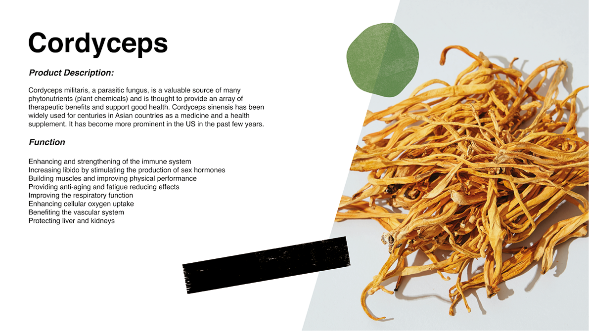 Mostly known as an immune boosting herb, these medicinal mushrooms possess many other qualities to support physical and mental wellbeing. Cordyceps' benefits span across a multitude of health properties such as energy boosting, athletic performance enhancing, libido boosting and stress relieving.
